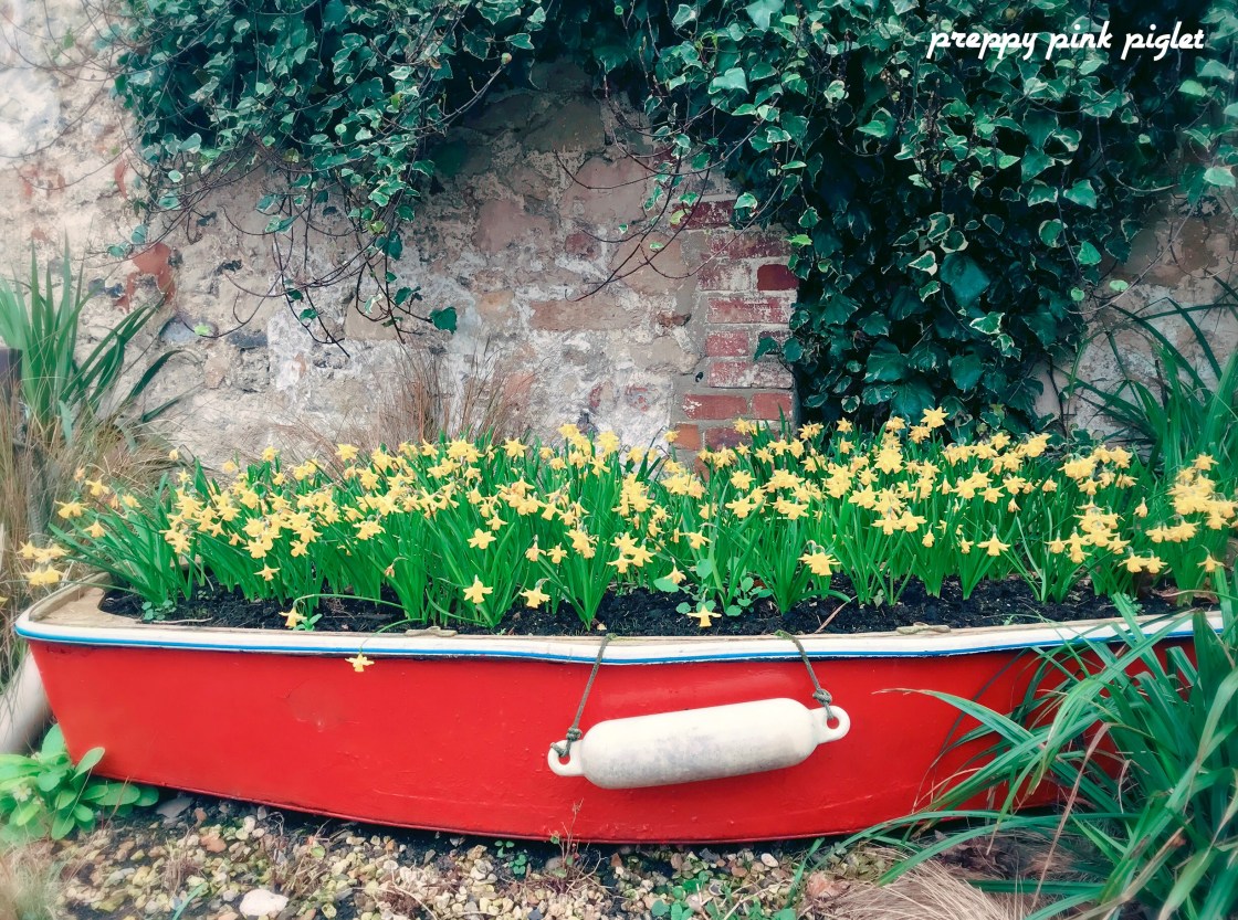 What is better than a boat? Well…a red boat with bright yellow daffodils π
